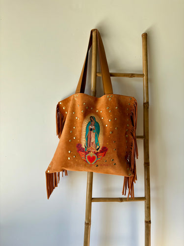 Cartera de cuero azul petróleo, Virgen de Guadalupe