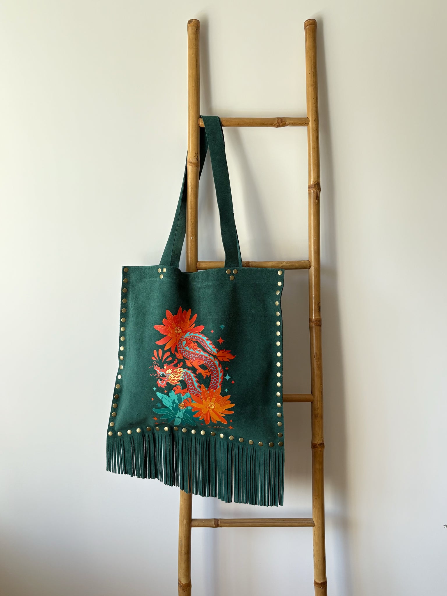 CARTERA DE CUERO NATURAL CON ILUSTRACIÓN HECHA A MANO